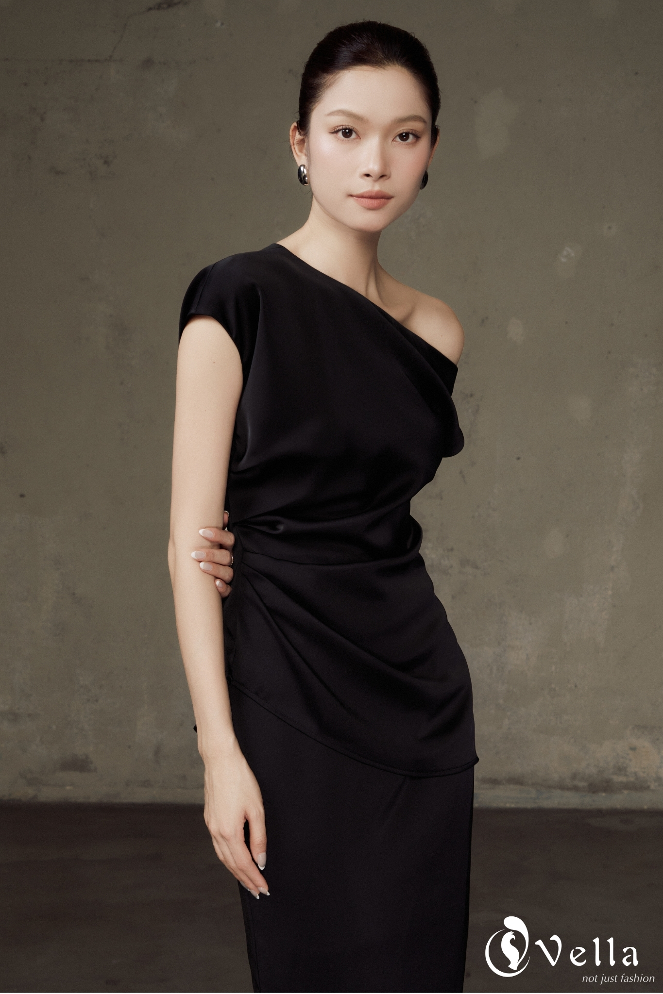 Áo peplum lệch vai tạo điểm nhấn nhẹ nhàng, khéo léo cân đối tỷ lệ cơ thể, giúp phần eo gọn gàng hơn. Phom áo ôm vừa, cùng với kỹ thuật xếpp nếp tinh tế giúp tổng thể trở nên mềm mại, dễ mặc trong nhiều hoàn cảnh công sở.